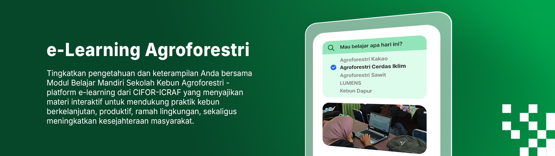 Sekolah Agroforestri Berbasis Digital kini hadir sebagai inovasi pembelajaran yang praktis, interaktif, dan berkelanjutan. Platform ini memungkinkan siapa saja untuk belajar kapan saja dan di mana saja. Di dalamnya tersedia berbagai topik kursus, mulai dari agroforestri kakao, agroforestri kelapa sawit, agroforestri cerdas iklim, dengan pendekatan agroforestri dari skala tapak hingga bentang lahan.